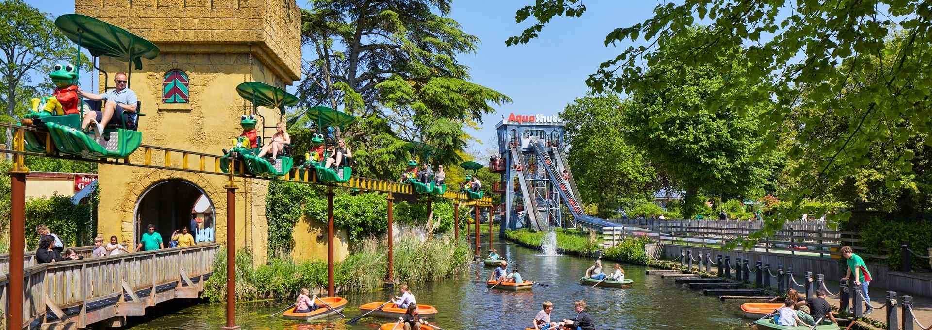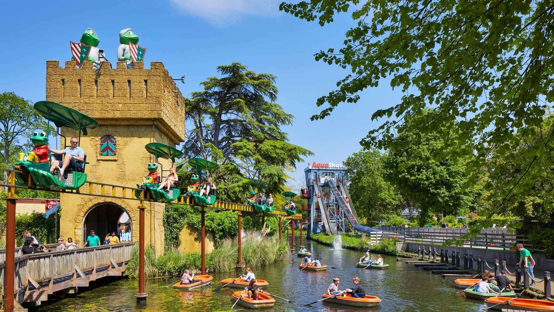 As you pedal over suspended rails, Wonderland and Rick's Adventure Castle look like fairy lands.