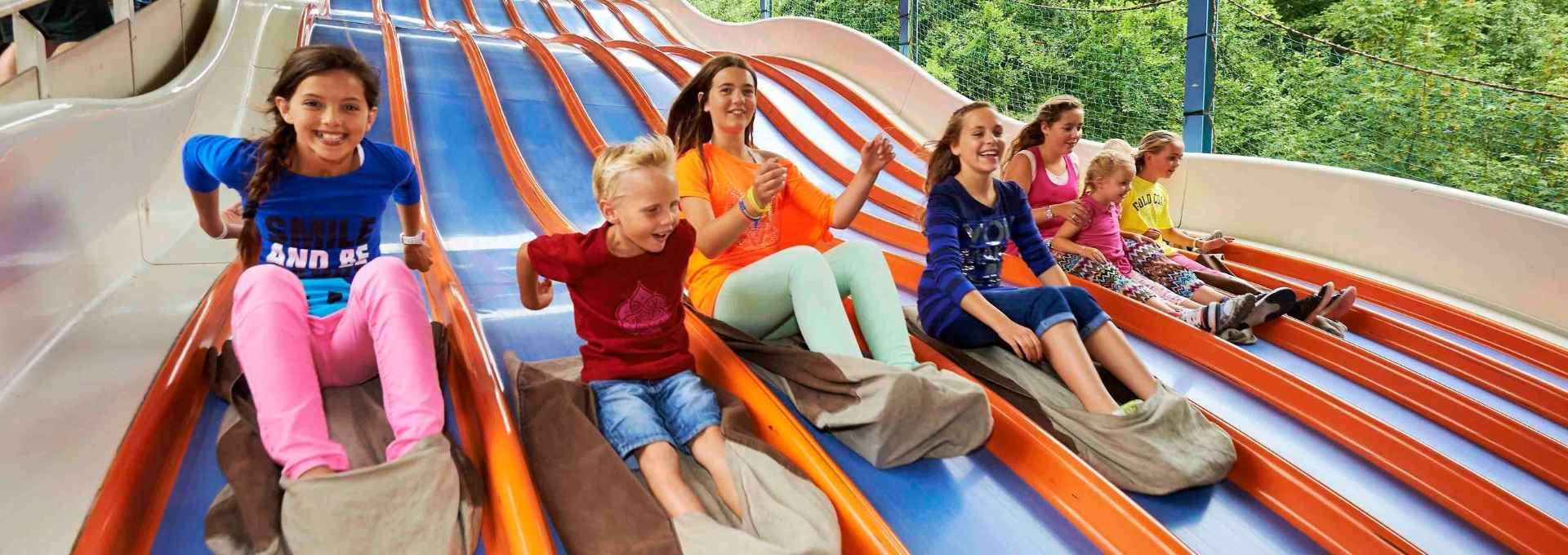 The Superroetsj contains eight parallel slides, so you can make a race of it. Climb the stairs all the way up and slide down this super slide on one of the special carpets.
