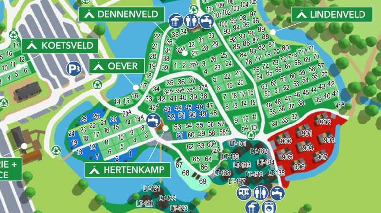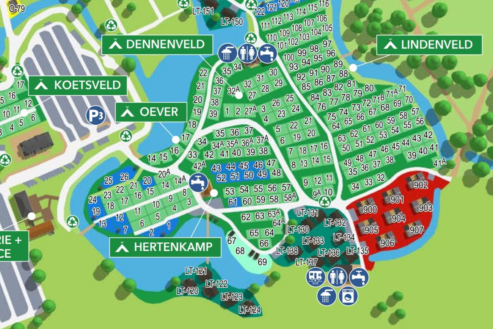 The Hertenkamp doesn't bear this name for nothing, because it used to be a real Deer Camp. On the field you can even find the original deer barn! The trees on the field ensure that there are many shady spots. The places with private sanitary facilities are adjacent to the water.