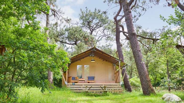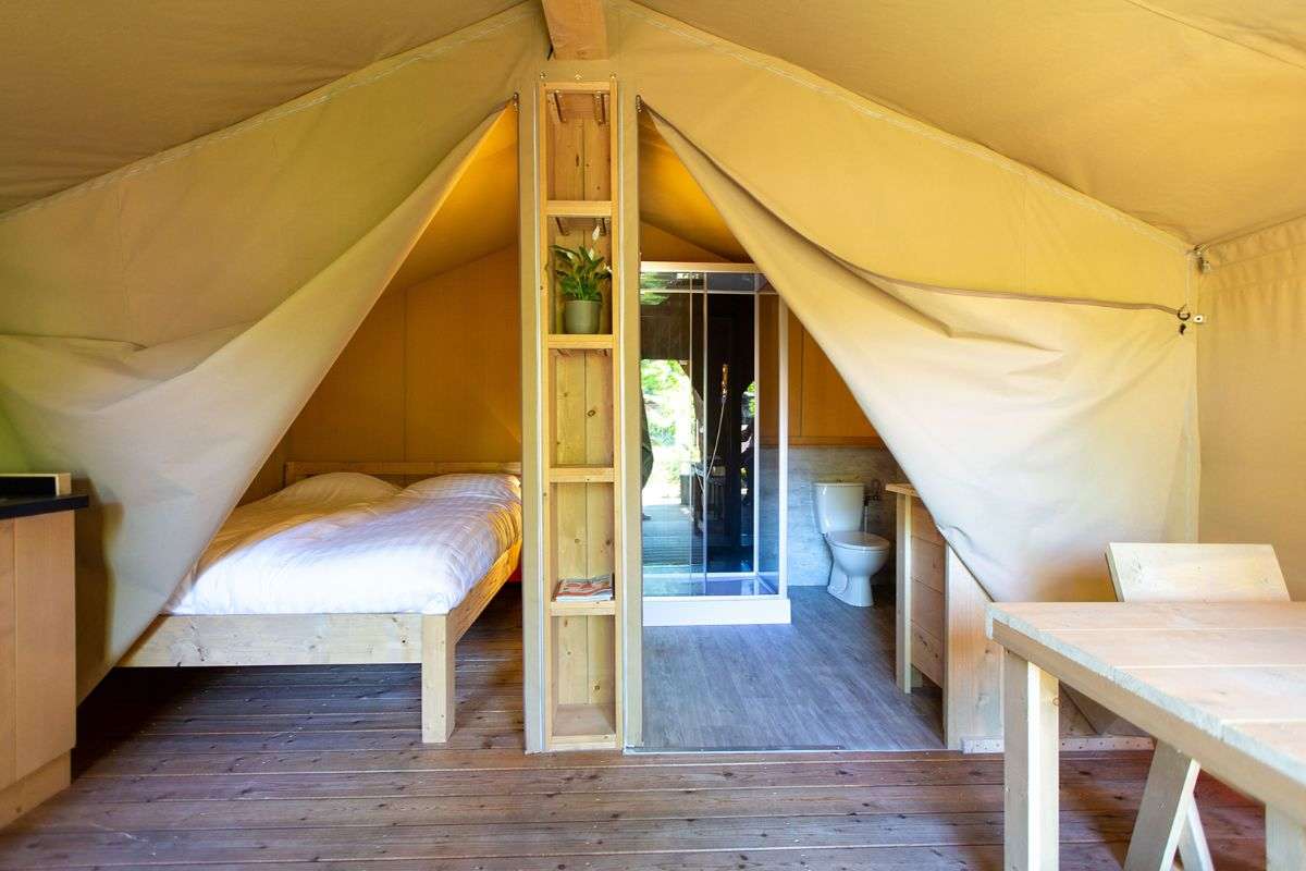 On an idyllic spot on our Duinvallei site, in the middle of our beautiful woodland and dunes, you’ll find this Luxury Lodge tent for two people. Here, you can enjoy a luxury glamping holiday together surrounded by nature.