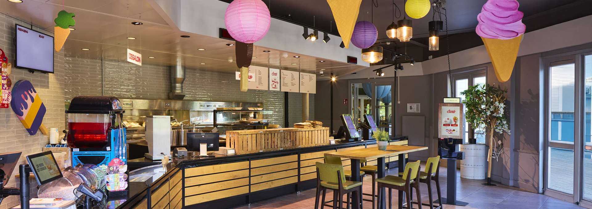 How do you like your fries? We all have it: mayonnaise, ketchup, curry and a french fries tastes even better with a frikandel, hamburger or cheese soufflé. Take your snacks with you to your accommodation or if you want to keep everything to yourself: eat them in our snack bar!