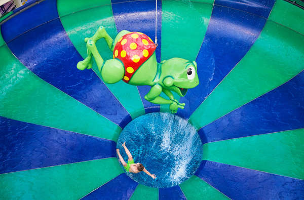 From a slide, which begins in a 15 metre high tower, you slide down at great speed, spin around in the chute and then plunge into a splash pool. The so-called ‘Catwalk’ is meant for visitors who prefer to check out the action from above the Space Bowl first!