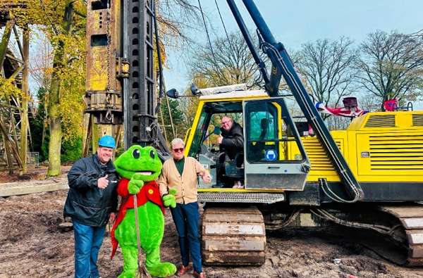 In the presence of our director, Philip van Zuylen van Nijevelt, and Rick the Frog, the very first pile has been driven for our new Kikkerachtbaan 2.0. A memorable milestone.