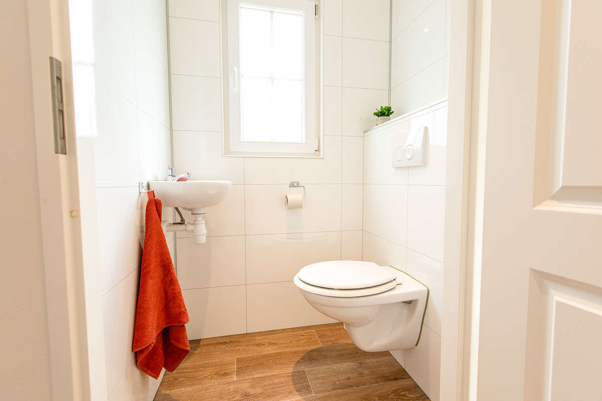 The kitchen is well-equipped and includes appliances such as a dish-washing machine and combi-microwave. There’s no need to form a queue in the bathroom, thanks to its double sinks. The toilet is in a separate room.