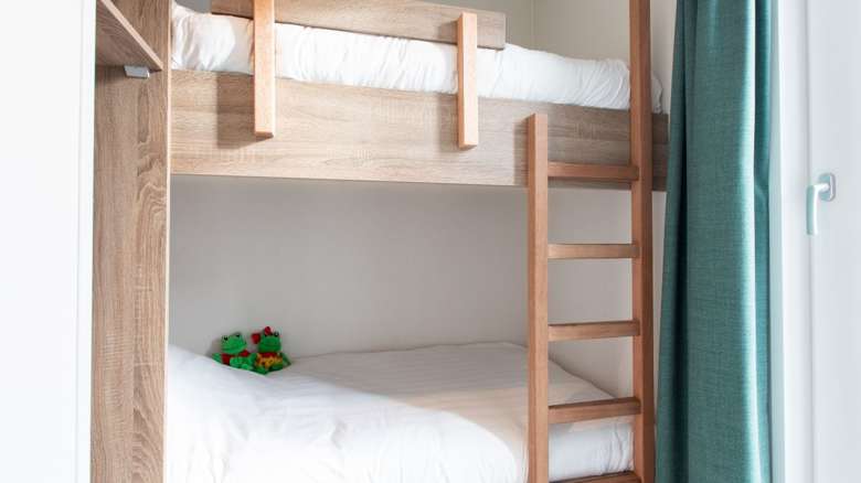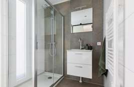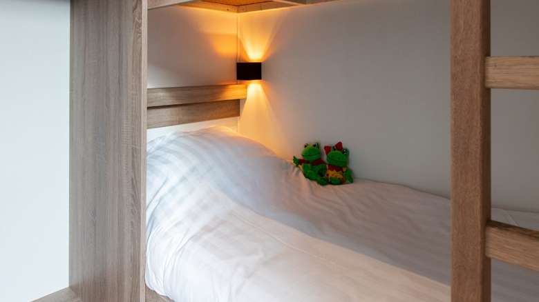 This Duingalow contains three bedrooms, including a double box spring bed, two single box spring beds, and a bunk bed. A cot, cannot be placed in the bedrooms. The holiday home also features a luxurious bathroom with a walk-in shower, and there is a separate toilet available.