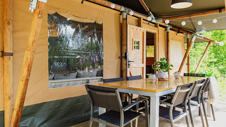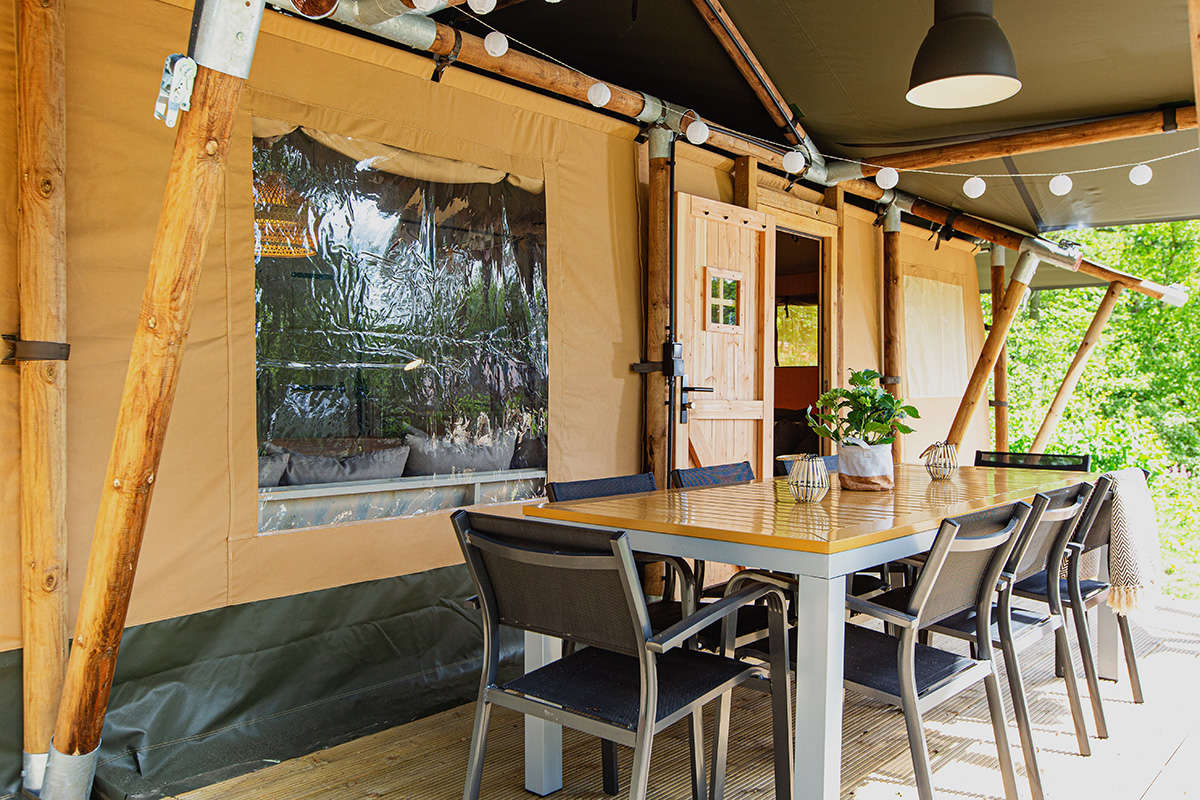 The tent has a total floor area of 76.5 m², making it feel incredibly spacious. Plus, the large veranda with awning and large picnic table allows you to enjoy the great outdoors together.