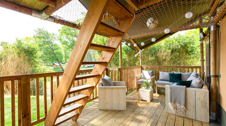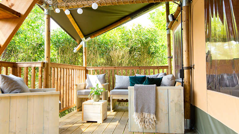 What makes this Ranger Lodge extra special is its spacious covered terrace with a comfortable lounge set. This terrace is surrounded by shelter, creating a cosy and inviting atmosphere. Off the veranda is a picnic table where you can enjoy the great outdoors right up to the end of the day.