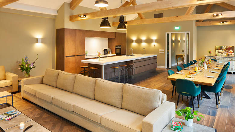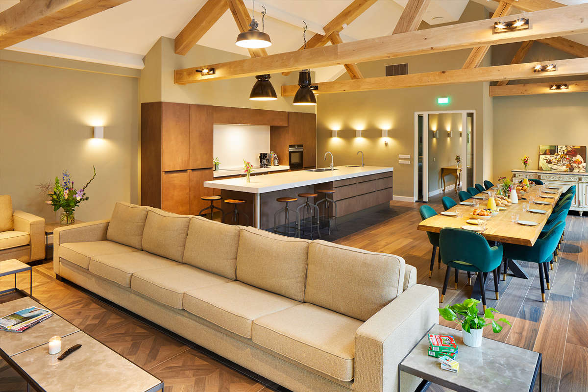 The Oranjerie consists of a main building and the adjacent Residence. The buildings can house up to 14 and 16 people and are connected by a corridor. When both accommodations are rented separately, this corridor is closed. Do you want to stay with up to 30 people? Then rent the Oranjerie + Residence as a whole!