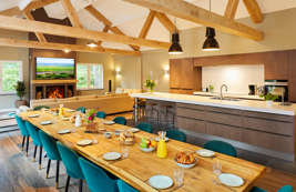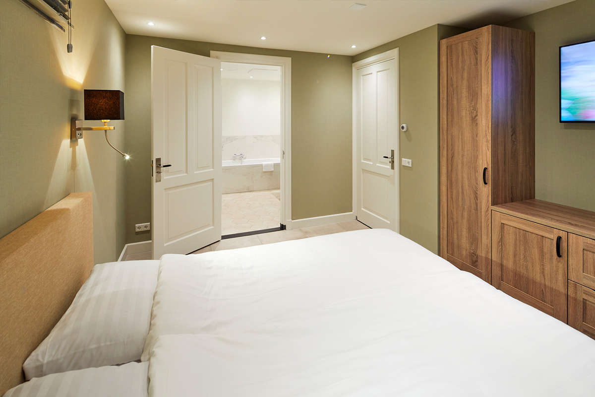 The Residence has a living room with cozy fireplace, a seating- and dining area, kitchen, separate toilet and a double bedroom with ensuite bathroom with shower, two sinks and toilet on the ground floor. Underneath the Residence is a large basement with five bedrooms. Three bedrooms with double beds and two bedrooms with two single beds. All bedrooms have an ensuite bathroom with bath or shower, two sinks and a toilet.