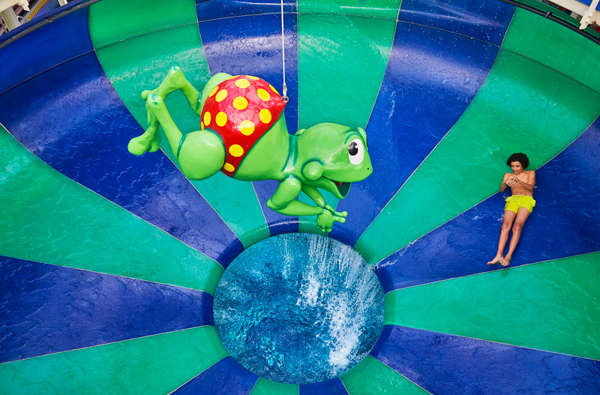 From a slide, which begins in a 15 metre high tower, you slide down at great speed, spin around in the chute and then plunge into a splash pool. The so-called ‘Catwalk’ is meant for visitors who prefer to check out the action from above the Space Bowl first!